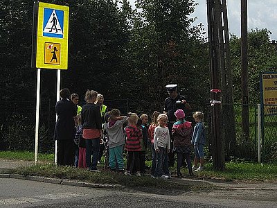 Nad bezpieczeństwem w drodze do będzińskich szkół obok policjantów z drogówki czuwali wczoraj uczniowie klas licealnych o profilu policyjnym działający w ramach Młodzieżowej Służby Ruchu Drogowego. Wspólne patrole odwiedziły również inne szkoły w powiecie, między innymi Szkołę Podstawową w Gródkowie. Policjant w trakcie pogadanek na temat bezpieczeństwa w trakcie drogi do szkoły przypomniał dzieciom o prawidłowym sposobie poruszania się po drodze i bezpiecznym przez nią przechodzeniu. Zdobytą wiedzę dzieci mogły sprawdzić praktycznie pod okiem policjanta i pomagającym mu licealistom z Młodzieżowej Służby Ruchu.