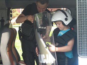 W ramach akcji "Lato w mieście" organizowanej przez będziński Ośrodek Kultury na terenie dzielnicy Grodziec odbył się wczoraj popołudniu Mini Festyn dla dzieci. Bogatą ofertę dla najmłodszych uzupełnili również będzińscy policjanci prezentując sprzęt i wyposażenie policyjne.