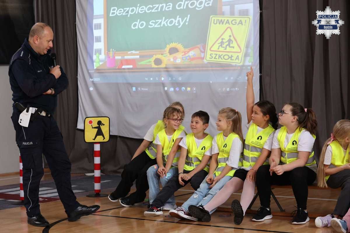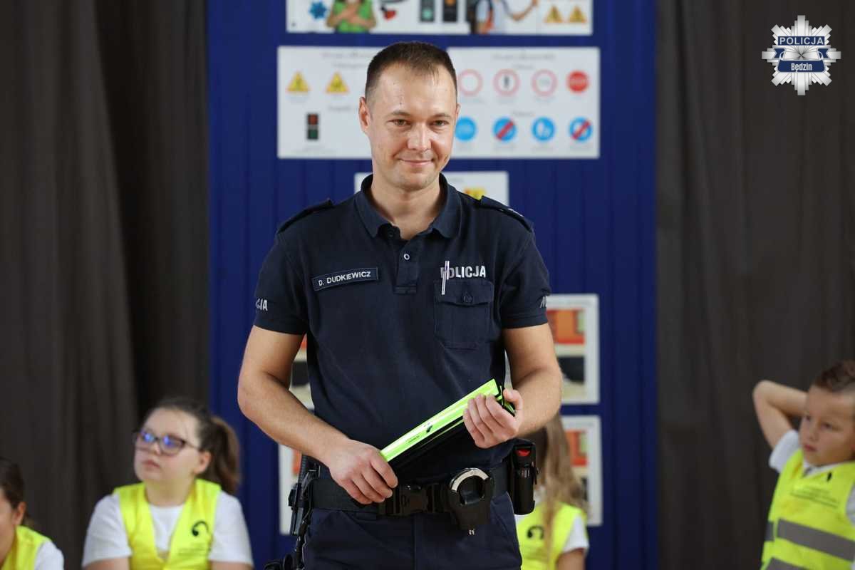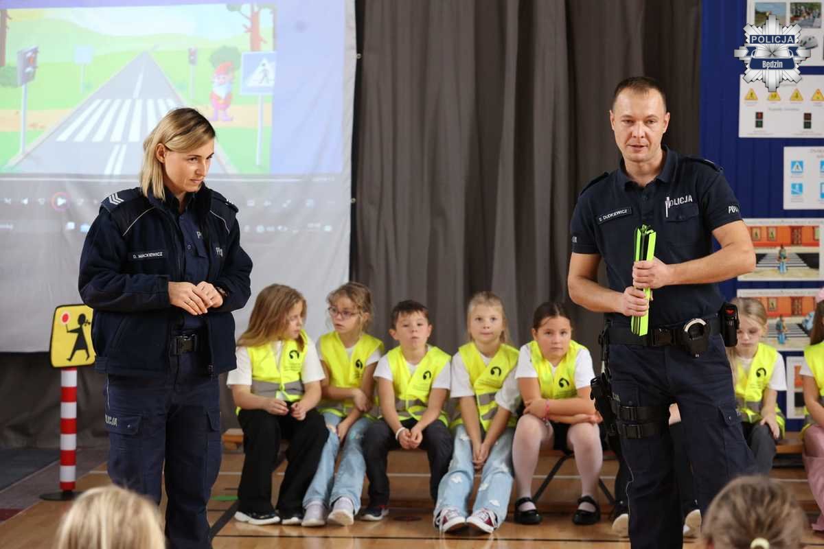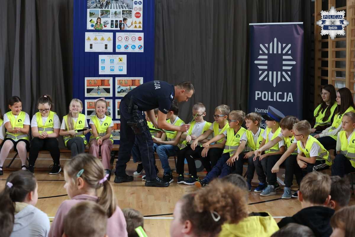 Stróże prawa podkreślili, jak ogromne znaczenie ma widoczność na drodze – zwłaszcza po zmroku. Uczniowie otrzymali odblaski, a policjanci przypomnieli, że noszenie elementów odblaskowych to nie tylko obowiązek, ale przede wszystkim sposób na zwiększenie własnego bezpieczeństwa. Zachęcali również, by „świecić przykładem” – dosłownie i w przenośni, aby dawać dobry wzór innym użytkownikom dróg.