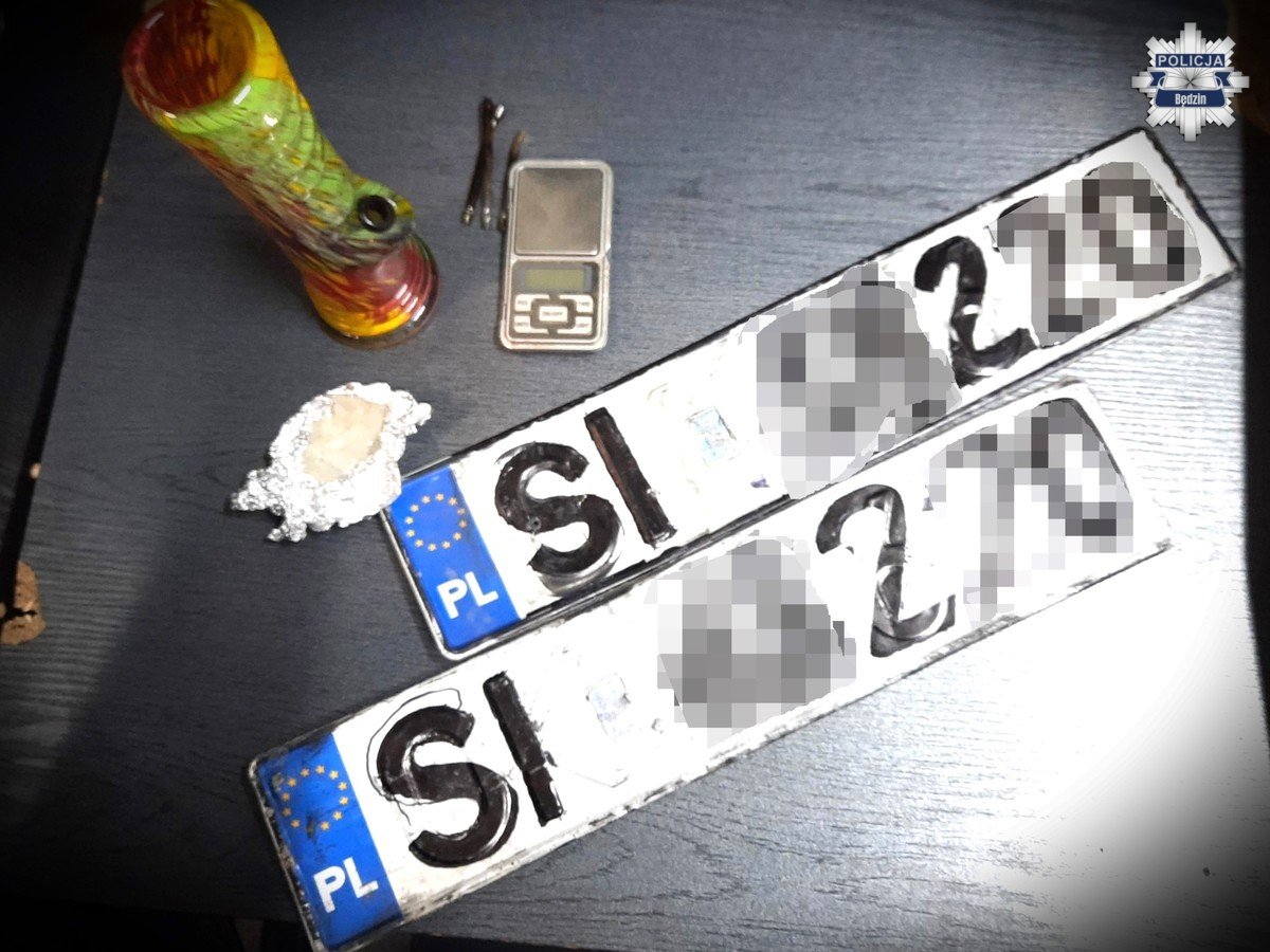 Policjanci z będzińskiej drogówki zatrzymali 21-letniego mężczyznę, który prowadził samochód pomimo obowiązującego zakazu i pod wpływem środków odurzających, które posiadał również przy sobie. Kierujący nie miał też przedniej tablicy rejestracyjnej, za to w bagażniku dwie podrobione. Teraz grozi mu za to do 5 lat więzienia.
