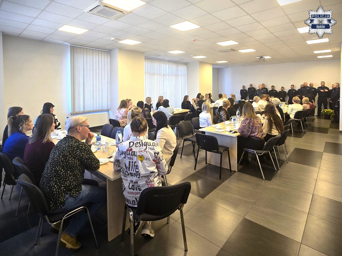 Z okazji „Dnia Kobiet” Komendant Powiatowy Policji w Będzinie insp. Marcin Lemański wraz policjantami zaprosili wszystkie Panie na uroczyste spotkanie. Komendant z okazji Dnia Kobiet złożył paniom pracującym i pełniącym służbę, serdeczne życzenia oraz wyraził słowa uznania i podziękowania za codzienną pracę.