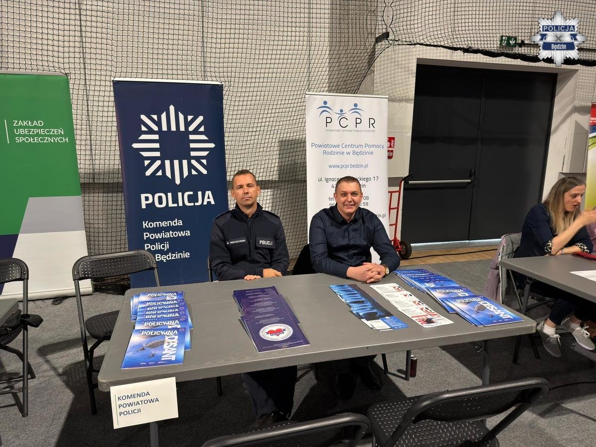 W hali widowiskowo-sportowej Nowak-Mosty Będzin Arena odbyło się wydarzenie pn. „Dzień Seniora z ZUS-em- Świadome decyzje, Bezpieczny Senior”, podczas którego uczestnicy mogli zdobyć cenną wiedzę o ubezpieczeniach, świadczeniach emerytalno-rentowych, cyberbezpieczeństwie oraz zdrowym trybie życia. Nie zabrakło również policjantów z Komendy Powiatowej Policji w Będzinie, którzy aktywnie włączyli się w inicjatywę na rzecz bezpieczeństwa osób starszych.